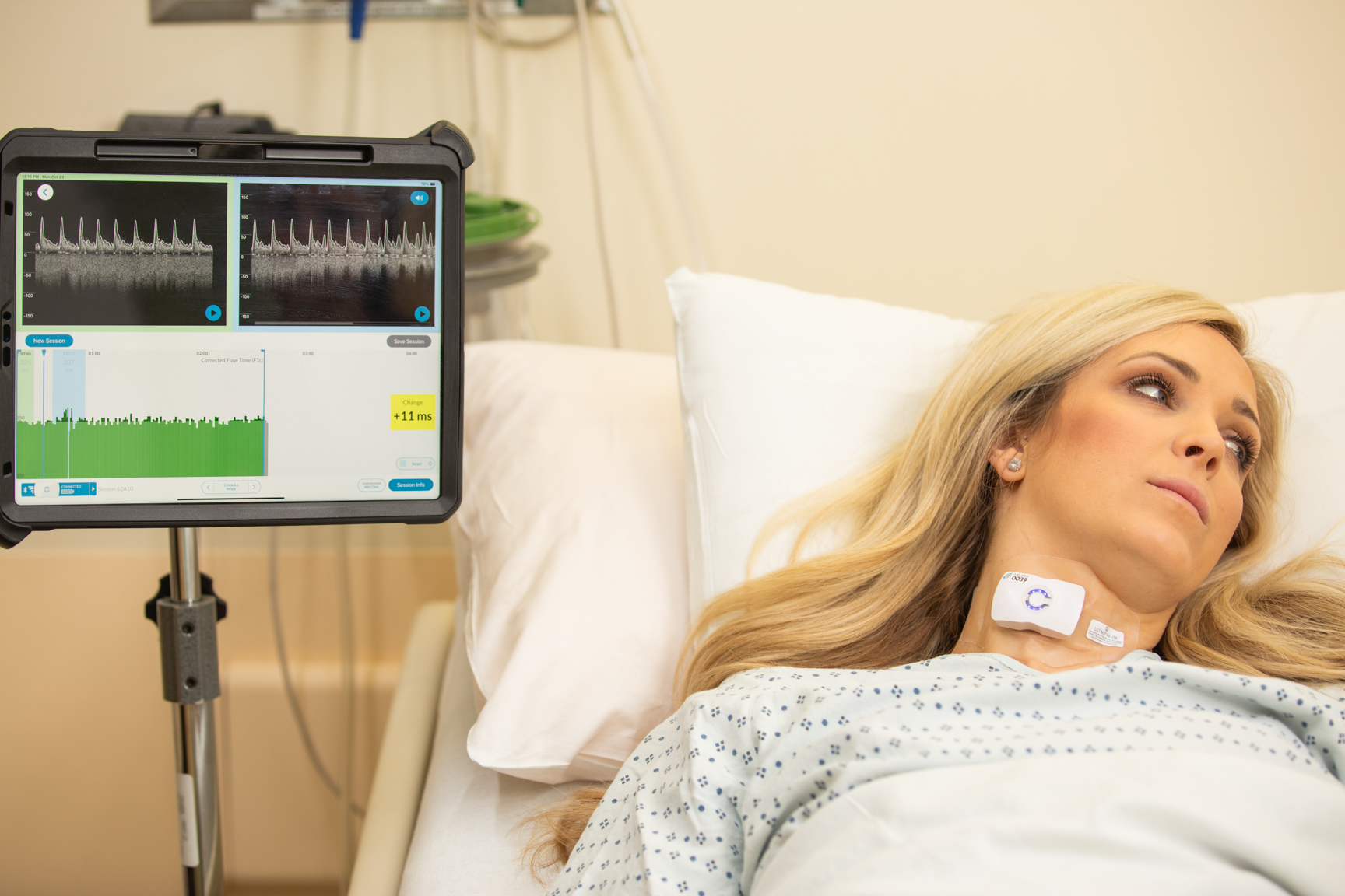 FloPatch is a wireless, wearable Doppler ultrasound that measures Carotid Flow Time at the bedside in minutes. No advanced ultrasound training needed, no extra equipment, no added burden on your team. It gives nurses the data they need to make confident, personalized fluid decisions and document them for SEP-1 compliance.